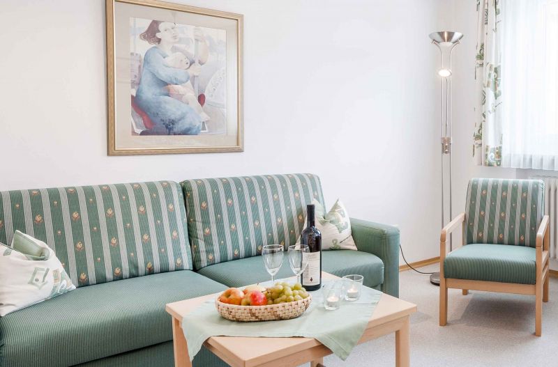 Bei uns können Sie Ihren Urlaub in liebevoll eingerichteten und rauchfreien Ferienwohnungen oder im Einzelzimmer verbringen. Die Unterkünfte verteilen sich auf das Appartementhaus und das Gästehaus, in dem auch der Aufenthaltsraum, der Billardraum und ein Hobbyraum mit einer Tischtennisplatte und Fitnessgeräten liegen. Die Ferienwohnung 7 - Glockenblume befindet sich im ersten Stock des Gästehauses und bietet Platz für bis zu 2 Personen.