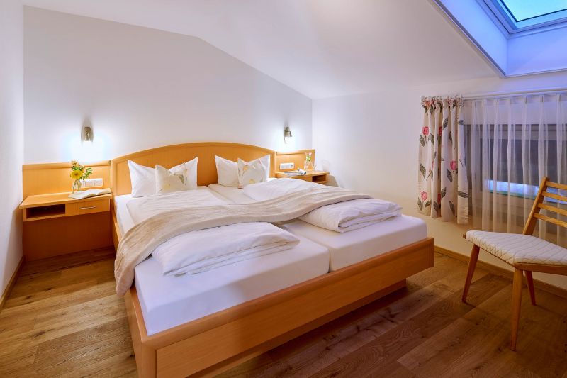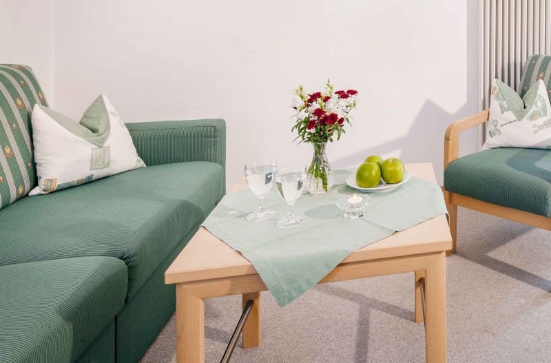 Bei uns können Sie Ihren Urlaub in liebevoll eingerichteten und rauchfreien Ferienwohnungen oder im Einzelzimmer verbringen. Die Unterkünfte verteilen sich auf das Appartementhaus und das Gästehaus, in dem auch der Aufenthaltsraum, der Billardraum und ein Hobbyraum mit einer Tischtennisplatte und Fitnessgeräten liegen. Die 4-Sterne-Ferienwohnung 8 - Tulpe befindet sich im zweiten Stock des Gästehauses und bietet Platz für bis zu 2 Personen.